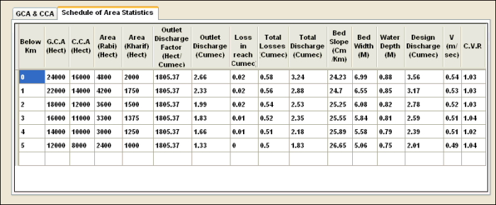 OUTPUT (SCHEDULE OF AREA STATISTICS)